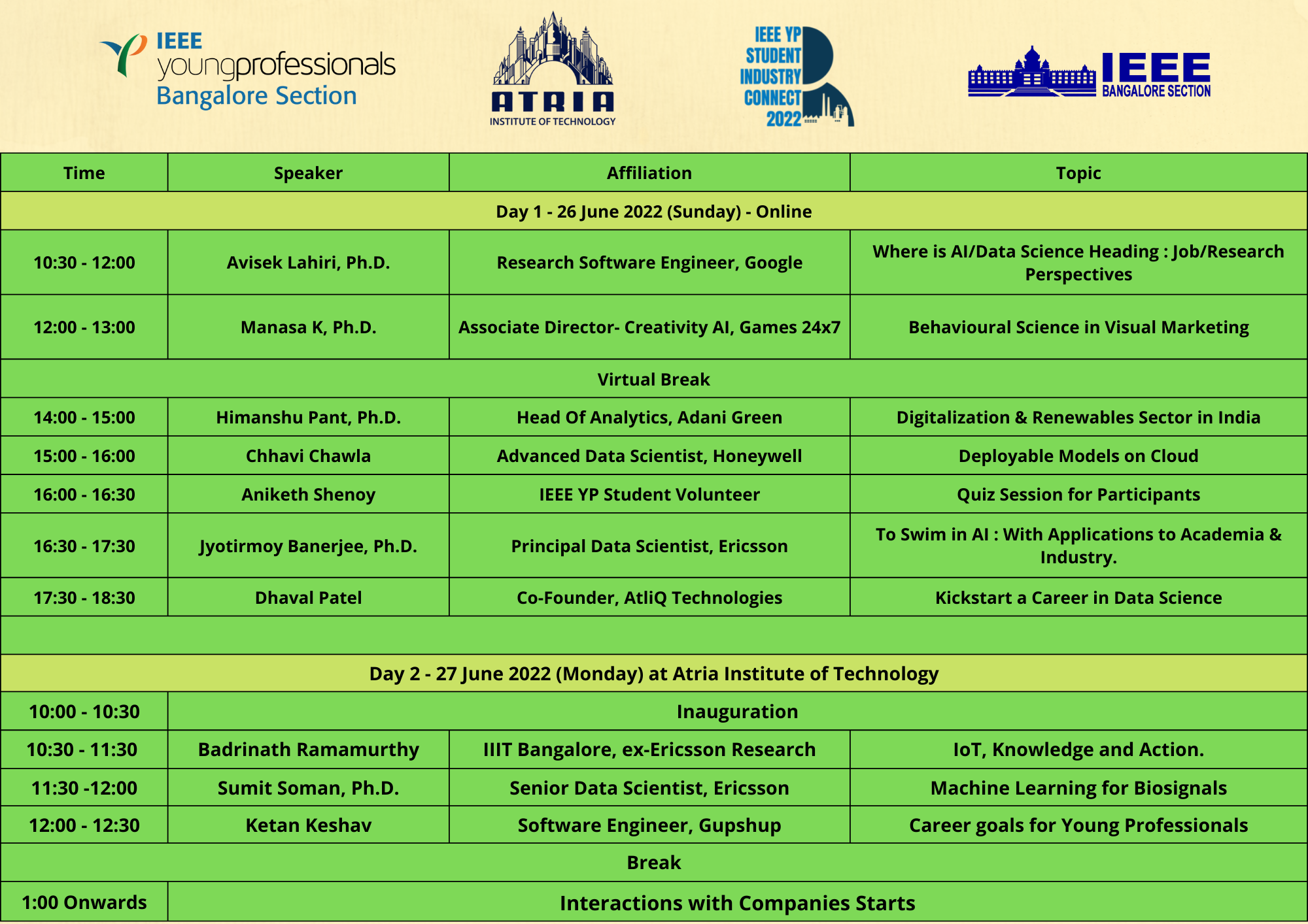The IEEE YPSIC 2022 brings forth a great opportunity for both the students and the industries bringing people from both the communities with a variety of opportunities.